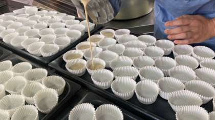 ういろうは,米粉・黒糖・砂糖を混ぜて,スチームコンベクションオーブンで蒸して作りました。