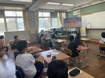 3時間目に1年生を迎える会があり,各学年が撮った動画を全校で観ました。