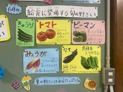 その効果もあってか,今日は残食が少なく,ごはんもしっかり食べられました。明日は,夏野菜のピーマンとトマトが登場します。夏野菜を食べて元気に過ごしましょう。