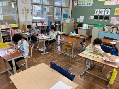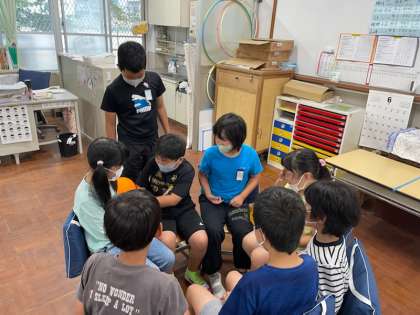そこで,「楽しく活動したいチーム」と「ゆったり静かに過ごしたいチーム」に分かれることになりました。活動チームはボール送りゲームやいす取りゲームを楽しみ,ゆったりチームは静かに読みたい本を読んでいました。自分が選択して過ごす時間を決めることもいいことですね。