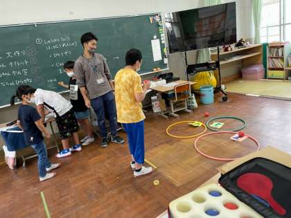 今日はその得点ゲームの新バージョンがスタートし,「よっしゃー!」とやる気満々のみんな。一つのゲームを集中して行い,その合計点を計算していきました。「1.2.3…」と正確に数えたり,「4倍だから…」と掛け算したり,それぞれが自分のめあてにそって頑張っていました。