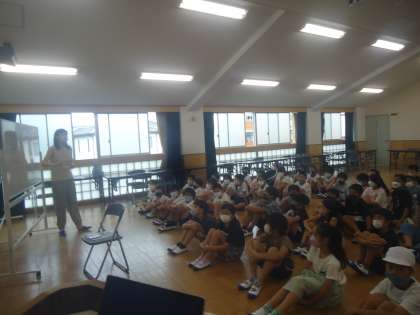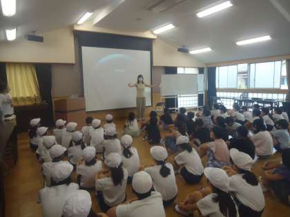 学年で目標を確認した4年生、今日は学年で体育授業参観に向かって、どんなことをしたいか考えました。民謡とはどんなものか知り、実際の映像を見ると「かっこいい」「楽しみ」とワクワクする姿が見られました。
