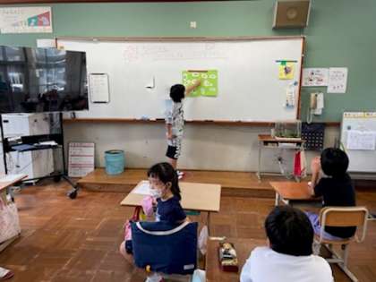 夏休みに取り組んだことをみんなの前で発表しました。「ぼくは貯金箱作ったよ」「ありの巣を観察しました」「お料理したよ」など、それぞれが頑張ったことを記録を見せながら上手に説明してくれました。