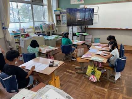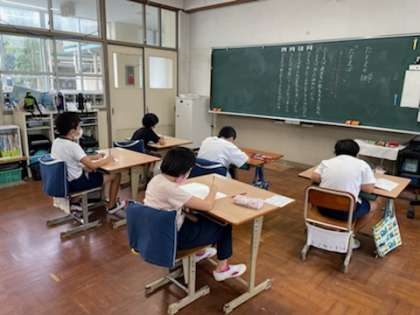 夏休みが終わり、1週間が経ちました。学校のリズムに少しずつ戻りつつあるみんなの様子です。2・3年生はそれぞれの課題に一生懸命取り組んでいます。4・5年生は夏休みの思い出の絵を黙々と描いています。6年生はたとえばの話を作り、ノートに書き進めています。暑さも少しずつ和らいできているので、やるときはやる!と気持ちを切り替えながら頑張っています。