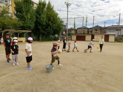 5組でもみんなでリレーをしました。バトンの代わりにボールをもって走ったり、ドリブルをしたりして楽しみました。3回戦やりましたが、どの勝負も白熱し、子どもたちの声援が響き渡っていました。スポーツの秋をこれからもっと満喫していきます!