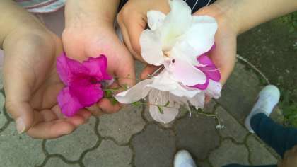 「この花、家の近くでも咲いてる。冬はなかった。」(ハナミズキ)