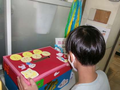 回答してもらったアンケートを提出してもらうためのポストも、みんなで手作りして、職員室前に設置させてもらいました。