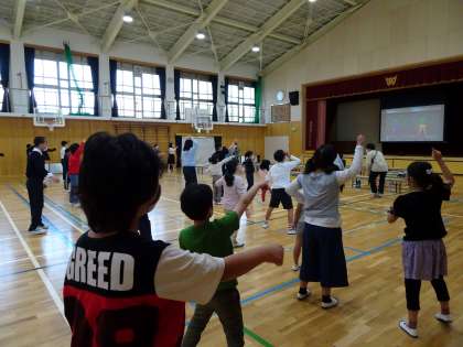参加した全員で大きな円になってするゲームや全員でのダンスなど、たくさんの活動を通して、ほかの3校のお友達とも関わることができました。