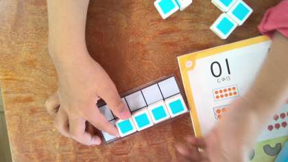 数えたいものの上に置いたブロックを、一目見て分かるように10の部屋に並べなおしてみると・・・大きさや生き物かどうかに関わらず、全ての数を数えることができました。