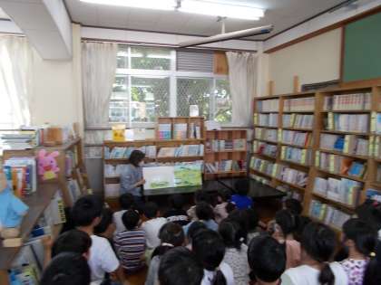 学校図書館司書の辻上先生に、「そらまめさんの おうち」という絵本の読み聞かせをしてもらいました。子どもたちは、誰が登場するのか、次は何が起こるのか、わくわくしながら聞いていました。これからも、たくさん本を読んでほしいなと思います。