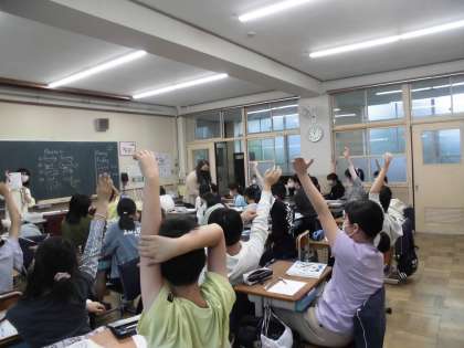 昨日から6月になりました。早い梅雨を迎え今日は1日中雨です。しかも大雨です。雨の音を聞きながらしっとりと学習している6年生です。