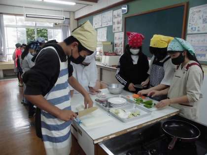 6年生 家庭科 調理実習「いろどりいため」3組 その2