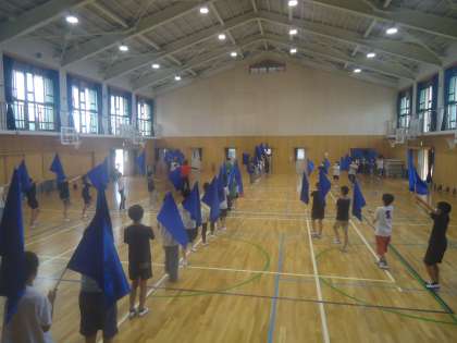 全校練習の後の5時間目も、学年で団体演技の練習を行いました。旗の使い方や並び方を覚え、見たときに思いが伝えられる形へと少しずつ仕上がってきています。ここから後半戦。さらによいものを目指して、ここからもがんばっていきます!
