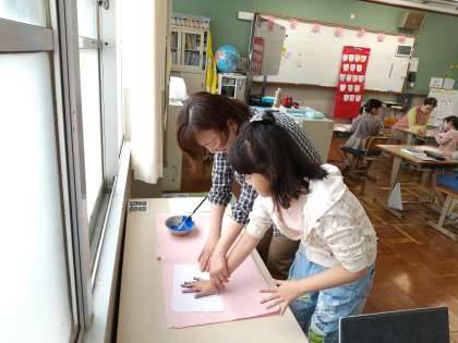 子ども日に向けてあるものを1年生と合同で制作しています。完成は間近!