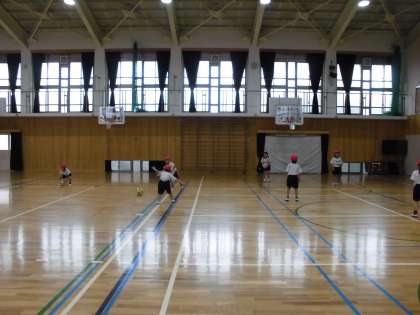 雨で運動場が使えなかったので体育館で体を動かしました。ペアやグループでボールや風船を使って楽しく活動しました。汗をかくぐらい動いた元気いっぱいの1年生です。