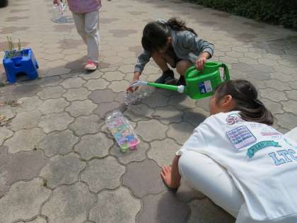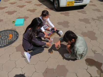 色々な材料に光を通し、どんな形に見えるかを考えながら活動をしました。「水を入れるときらきらする!」「色を塗るときれい!」など発見しながら活動していました。