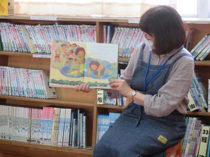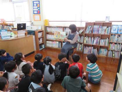 図書の時間には、司書の山岡先生に読み聞かせをしてもらっています。