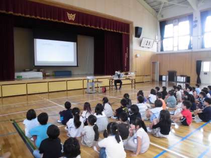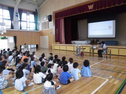 歯科医師の京谷先生に歯磨き指導をしていただきました。子どもの歯の数と大人の歯の数の違いやどうしてむし歯になるのかを教えていただきました。またおやつの食べ方や歯の磨き方についても知ることができました。おやつは甘くておいしいのでだらだら食べてしまいますが、むし歯にならないために食べ方の約束を守ることが大切だということも分かりました。お家でも学んだことを活かして歯を大切にしていきましょう!