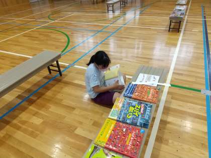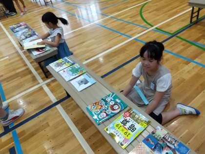 体育館いっぱいに広がった本たちを見て、子どもたちはワクワク♪