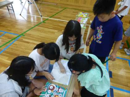 体育館に並んだたくさんの本に子どもたちは大興奮。