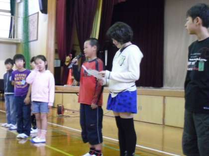 各クラスの代表が,学級目標を発表しました。学級目標は,一年間クラスで大切にする目標です。友だちのことを大切にしたり,みんなで協力し,よりよいクラスにするためのものです。これからも大切にし,自分たちの誇れる目標にしていきましょう。