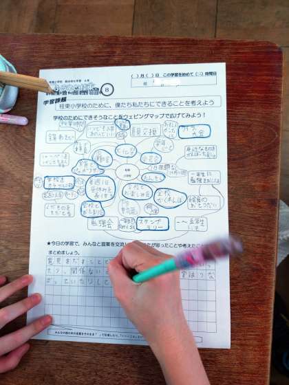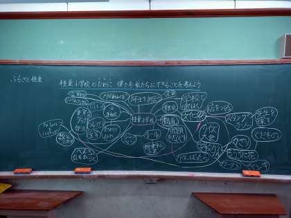 総合的な学習「ふるさと桂東」で、学校のためにできることを考えています。