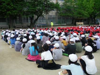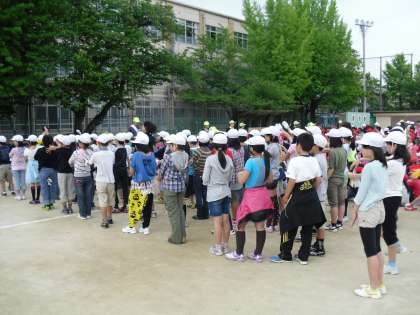 晴天のなか、5年生は桂駅周辺を清掃活動しました