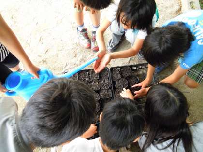 土を準備し,ひょうたんを植えました。