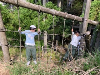 明日に予定していた冒険の森ですが、明日雨の可能性が高いということで、山の家の先生のご配慮で、初日に楽しむことになりました。