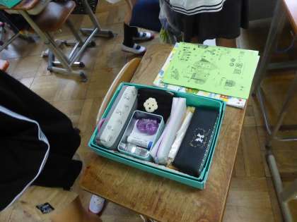 そうじ前の自分のお道具箱を撮影し整理整頓タイム。