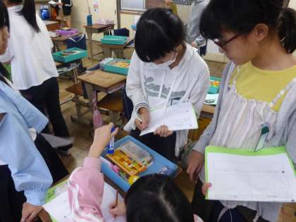 また、友達のお道具箱も見て回り、片づけ方や仕切りの工夫があるお友達を見つけます。