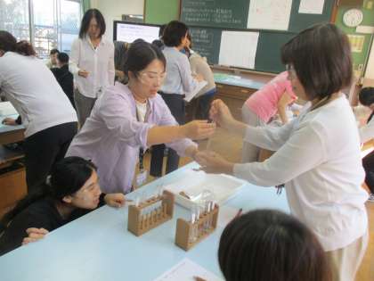 実際に教職員が実験しながら目の前の場面で