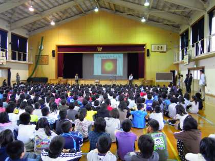 クイズや実験をしながら,地球・月・太陽の大きさや地球からの距離,なぜ金環日食が起こるのか,そして,金環日食の正しい観察の仕方や注意点を楽しく知ることができました。