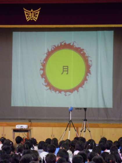 今月の桂東タイムで5月21日に起こる,金環日食について先生からお話を聞きました。