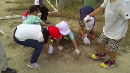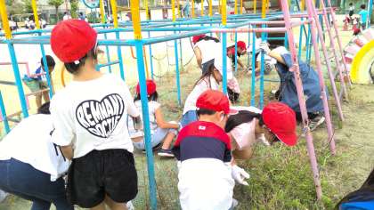 グリーンスクールでは、運動場の草抜きを頑張っていました。きれいになった運動場を見て、子どもたちもうれしそうな様子でした。