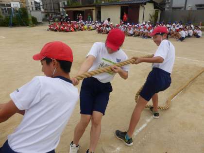 選択種目の綱引きやリレーをしました。