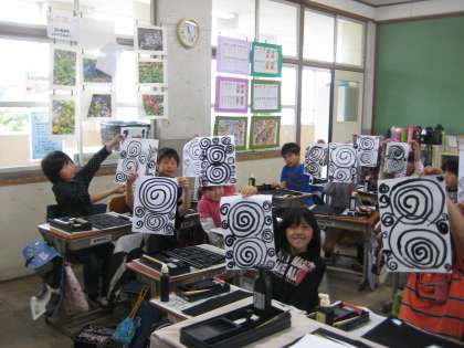 白い紙に墨のあとがくっきり。みんな頑張りました。