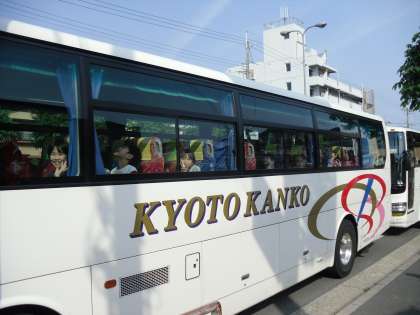 桂川街道まで歩いていき,2台のバスに分乗します。