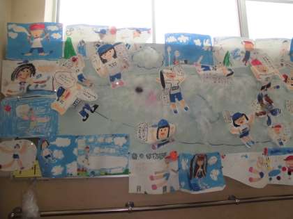 国語科で「くじらぐも」の学習をしました。「天までとどけ、一、二、三。」で桂東小の1年生もくものくじらに乗りました。「くじらぐもの上で昼寝をしたいな。」「おにごっこをしたいな。」「雲を食べると綿菓子の味がするかな。」など一人ひとりのおもいを吹き出しに書きました。