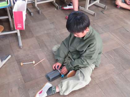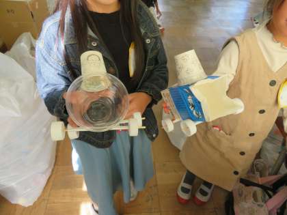 色んな種類の材料をつかって、遊びやおもちゃを考えています。遊びながら工夫して作っています。