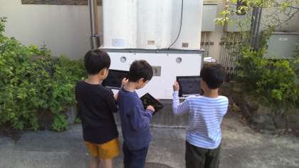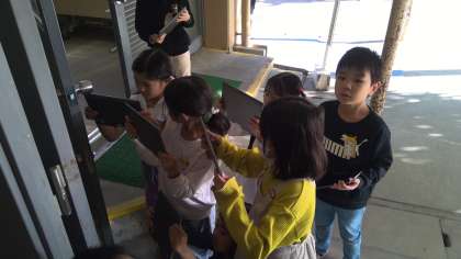 学校の中にかくれているお友達を探しに行きました。スケッチしたり、写真に撮ったり。「こんなところにも!」とたくさんお友達を見つけることができました。