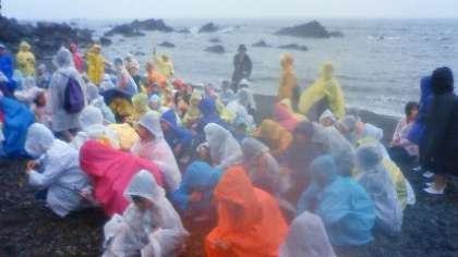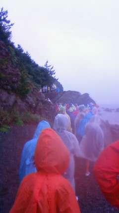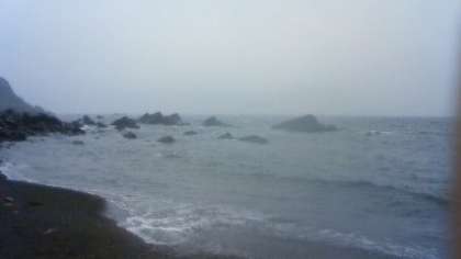 朝食後、小雨の時をみはからって、短時間にはなりましたが、カッパを着てみやざき浜へ行ってきました☆