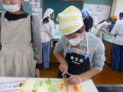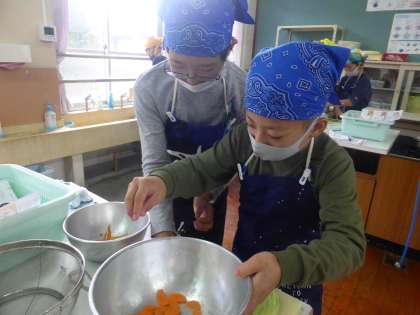 そして6年生で学習したいためる調理を生かし、グループで協力して作っています。