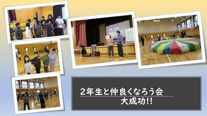 延期になっていた「2年生と仲良くなろう会」をしました。2年生も楽しみにしてくれていたようで、最初のエビカニクスからノリノリで踊ってくれました。