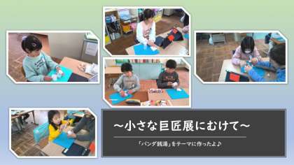 小さな巨匠展に向けて取り組み始めました。今年度は「私が主役!カラフルランド」というテーマで絵本を題材にして作り始めました。桂東は「パンダ銭湯」を題材にして作ります。タオルで拭いているパンダや湯船につかるパンダなど思い思いのパンダを作っていました。