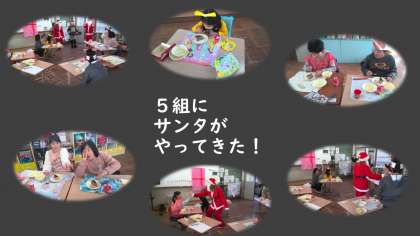 あわてんぼうのサンタクロースが給食時間に5組へプレゼントをもってやって来てくれました!