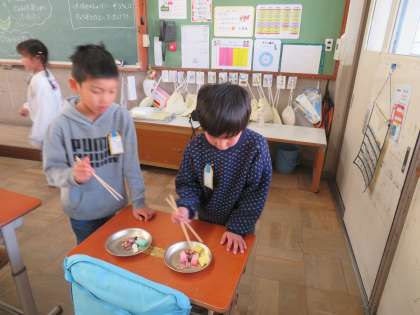 来週の豆つまみ大会に向けてクラスで練習を頑張っています。