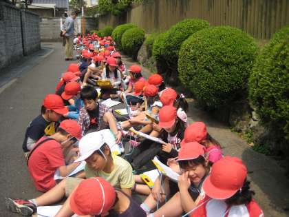 社会の学習で,自分たちが住んでいる校区のことを調べています。