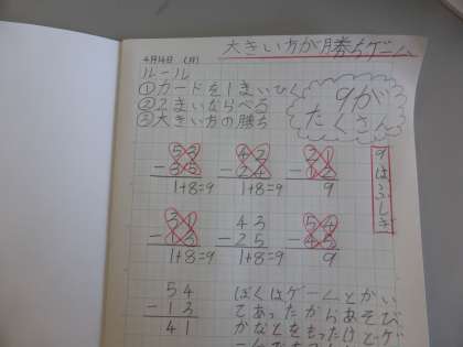 今日の活動は「大きい方が勝ちゲーム」です。