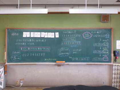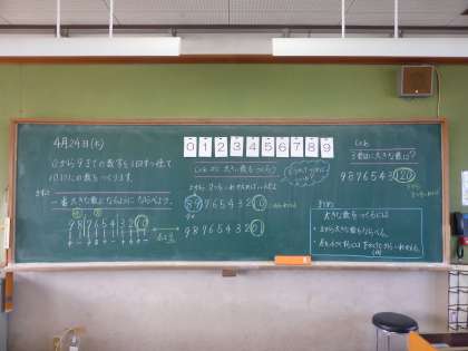 10枚のカードを一枚ずつ並べて、大きい数や小さい数を作りました。